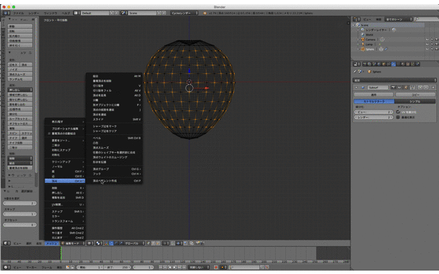 4 ) 選択しておいてメッシュメニュー〜頂点〜ベベルを選択